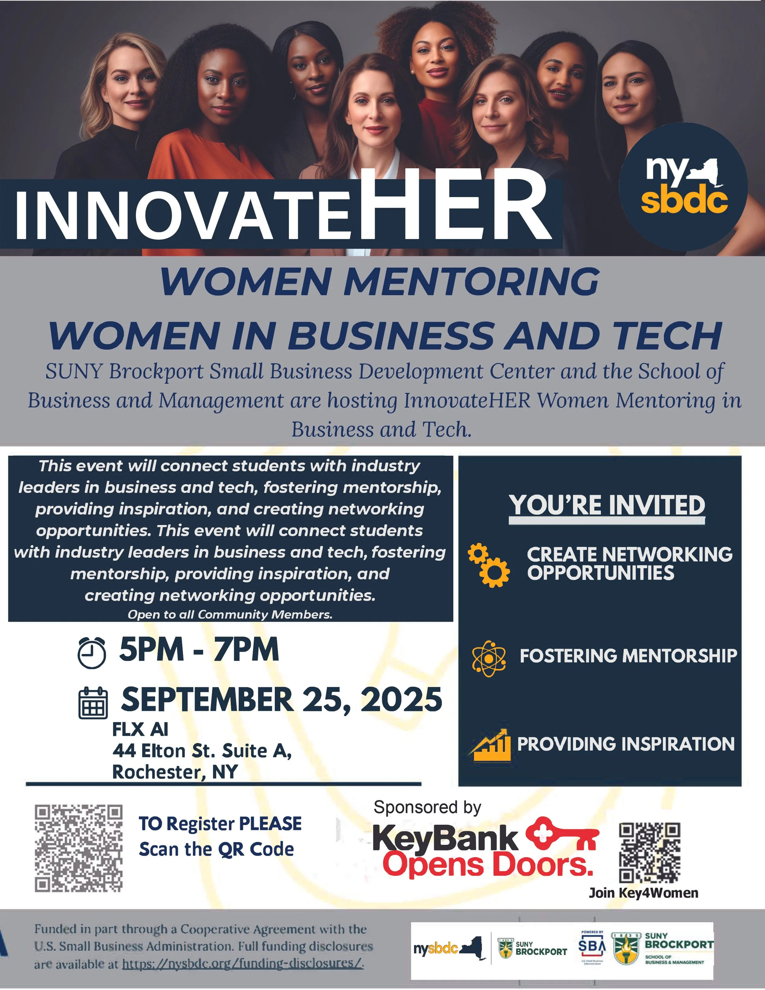 SUNY Brockport Small Business Development Center and the School of Business and Management are hosting InnovateHER: Women Mentoring Women in Business and Tech.